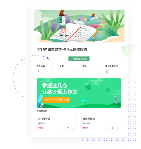 试听课程是很多培训机构的营销手段,通过Bangboss收款系统,可以制作出精美的试听课程报名表,裂变分享、收集资料、锁定客户一次完成。