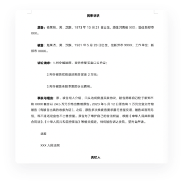 一键生成诉状