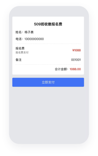 导入数据后,会针对每个业主生成单独的收款链接,业主点击链接即可完成在线付款,业主不在小区也能完成付款。
